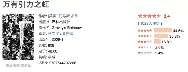 豆瓣评分:9.4(上图为2009年版本,目前没有中译本,UK$8的售价评分很少呢。9.4评分为下图版本,3.5软妹币售价也是醉了)