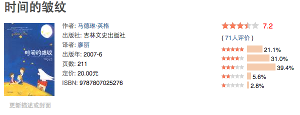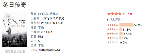 豆瓣评分:7.4(没发现中文版书,倒是找到了同名电影)