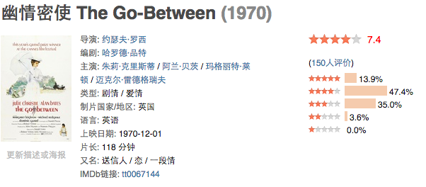 小说曾被改编成同名电影,故事讲述的是小镇男孩里奥为女孩玛丽安传递不可告人的秘密情信,而多年以后事件的后果才渐渐显现。这是一个关于过去与现在、纯朴与智识,还有人心变幻的引人入胜的故事。书中有句话这样说道,“过去是一片陌生的国度,人们在那里截然不同。”