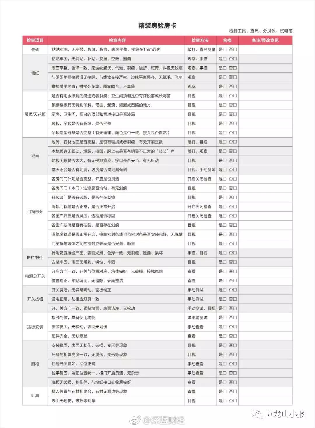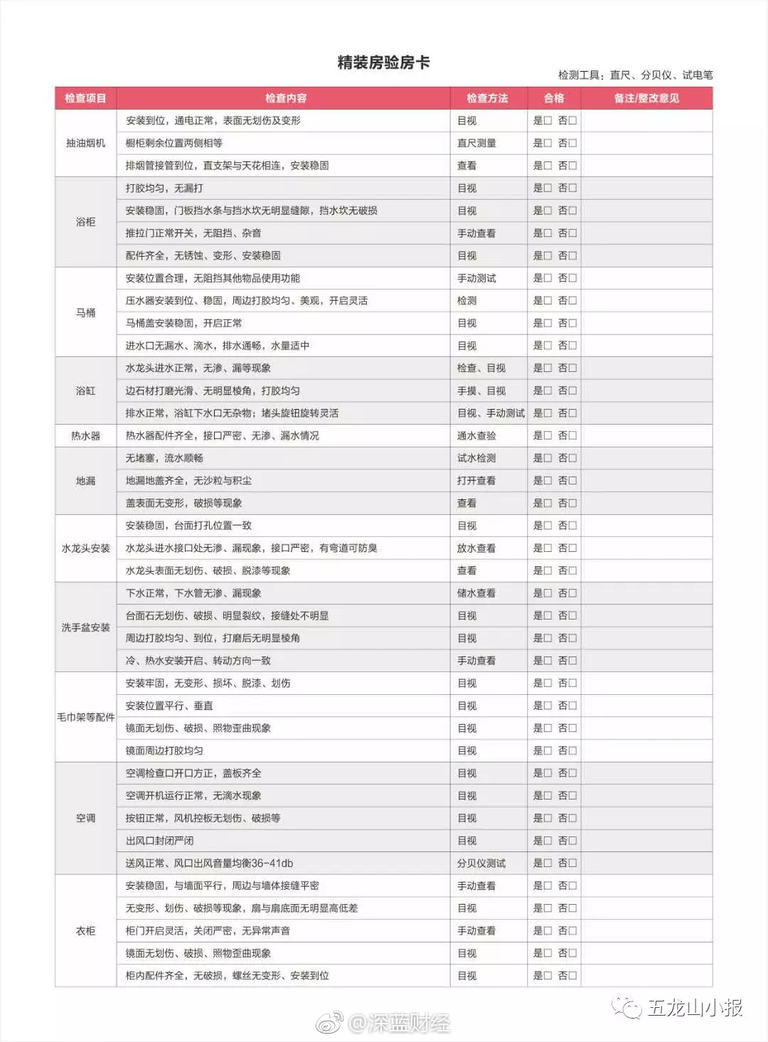 以下是精装房验收的具体细分项目,请业主们可以对照查验↓↓↓
