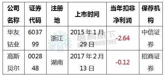 小编再来数一数,在2015年-2017年上市当年就亏损的公司有几家,还好,只有2家: